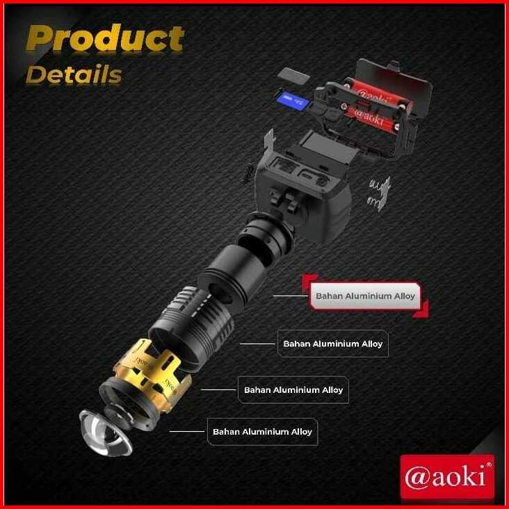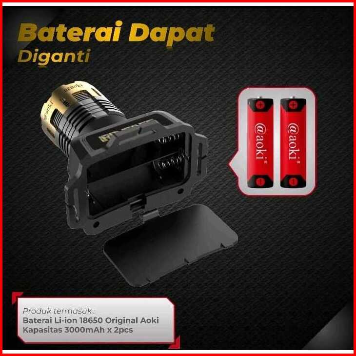 Senter Kepala Aoki Ak-3655a 90w Pro 2000 Lumen Baterai 6000mah Bisa Lepas Pasang- Mode Zoom - Dengan Indikator Baterai -