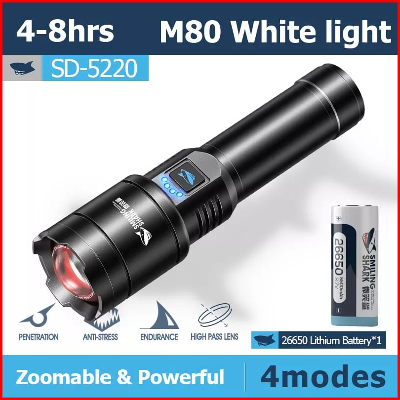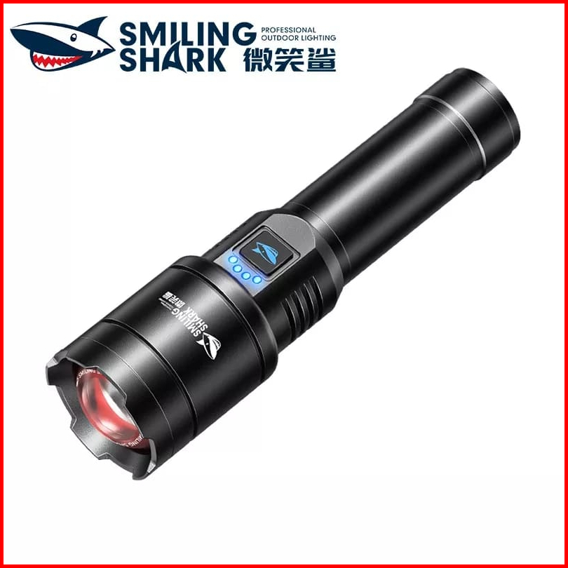 Senter Led Smiling Shark Sd-5220 M80 - Zoom - Cahaya Super Terang - Usb Type C - Mode Powerbank
