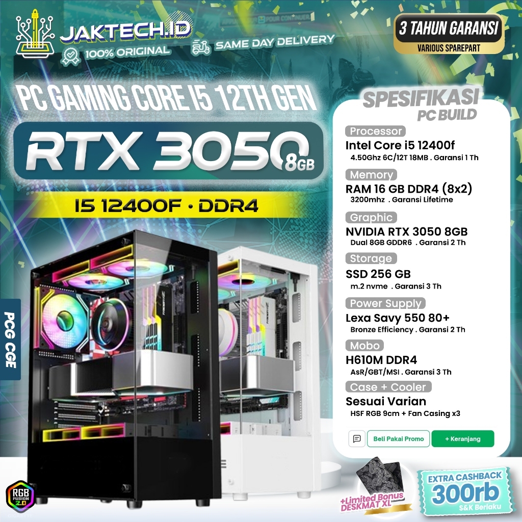 PC Gaming i5 12400 RTX 3050 Dual Fan 6GB/8GB RAM 16GB DDR4 SSD 256GB M2 NVME | Rakitan High End Design Editing Rendering Siap Pakai