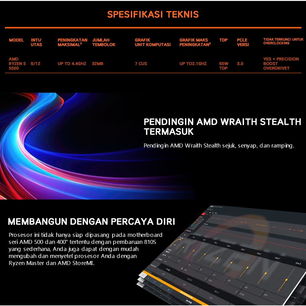 AMD RYZEN 5 5600 CPU 4.4Ghz Processor Socket AM4 6 Core 12 Thread Cache 32MB DDR4 3200MHz PCIe 4.0 AMD