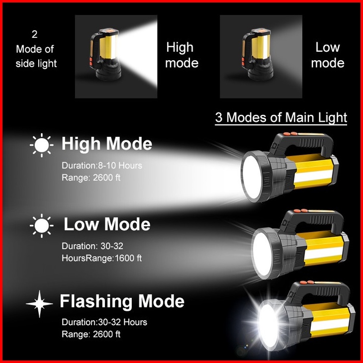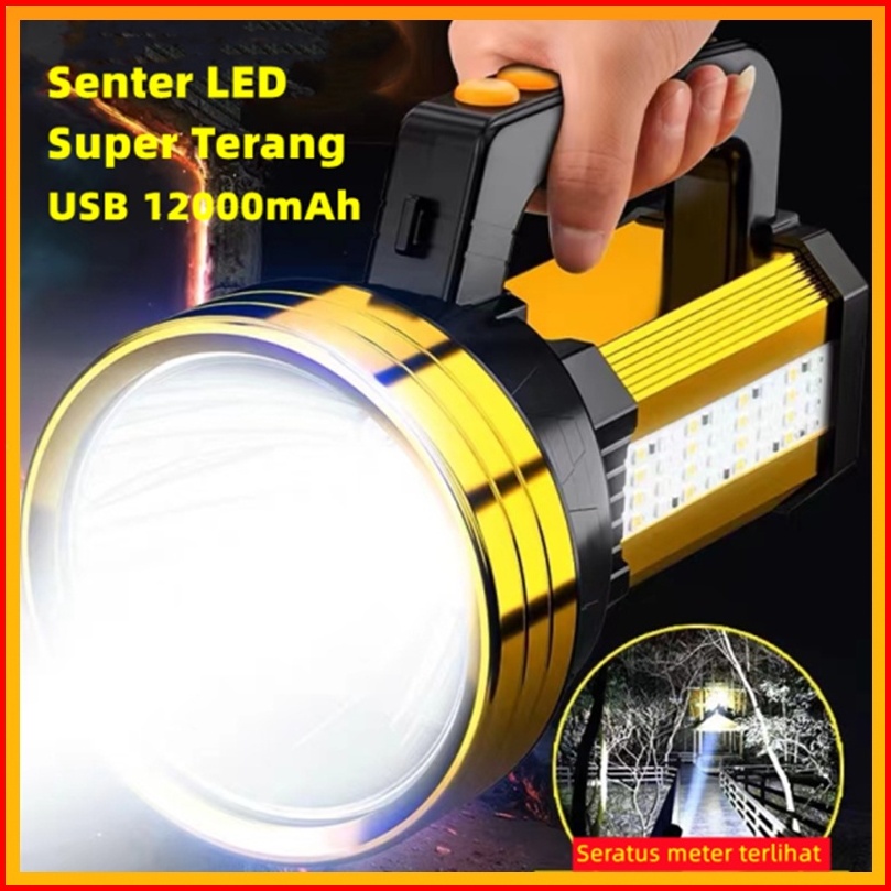 Senter Led Super Terang Jarak Jauh 3 Mode Senter Camping Jumbo Multifungsi 48w Ipx6 Waterproof Power 8000 Lumens