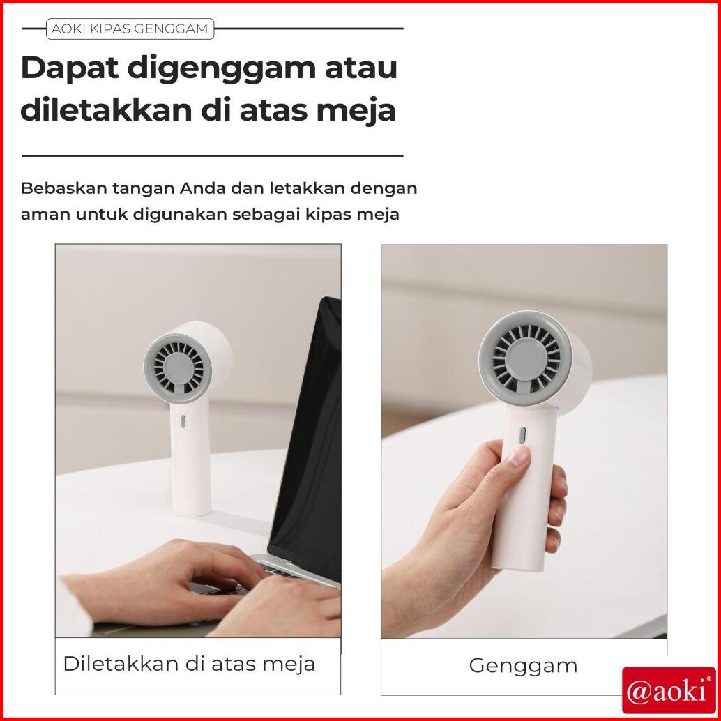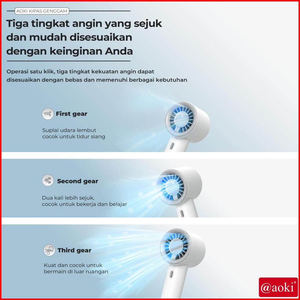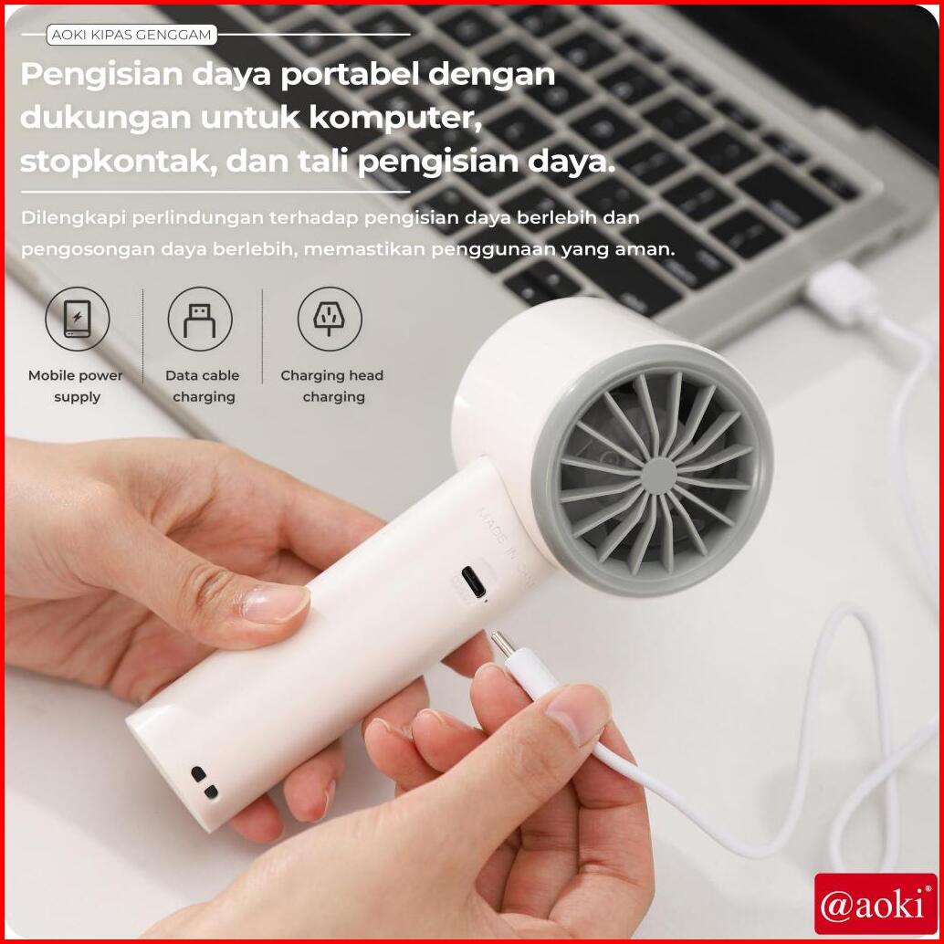 Aoki Kipas Mini Turbo Angin Kencang Hemat Daya Baterai Awet Portable 3 Kecepatan Usb Charging Baterai Tahan Lama