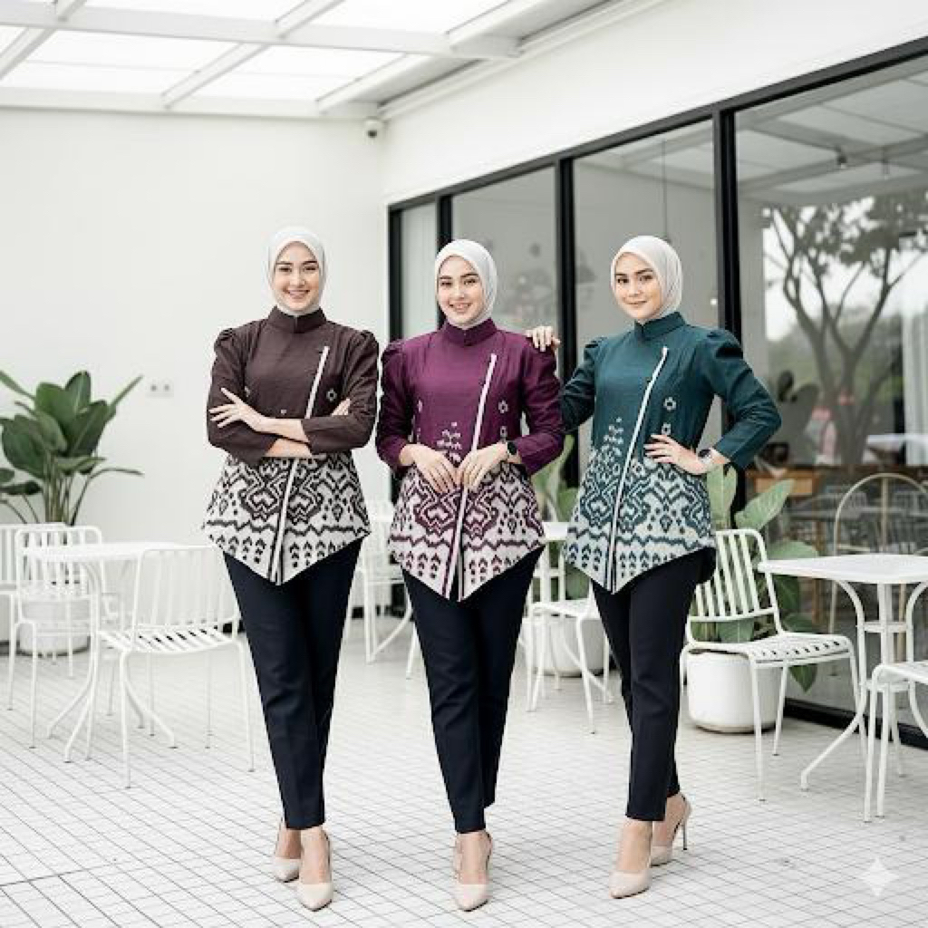 Atasan Batik Couple Tunik Seragam Batik Blus Wanita Blouse Batik Terbaru Motif Aena