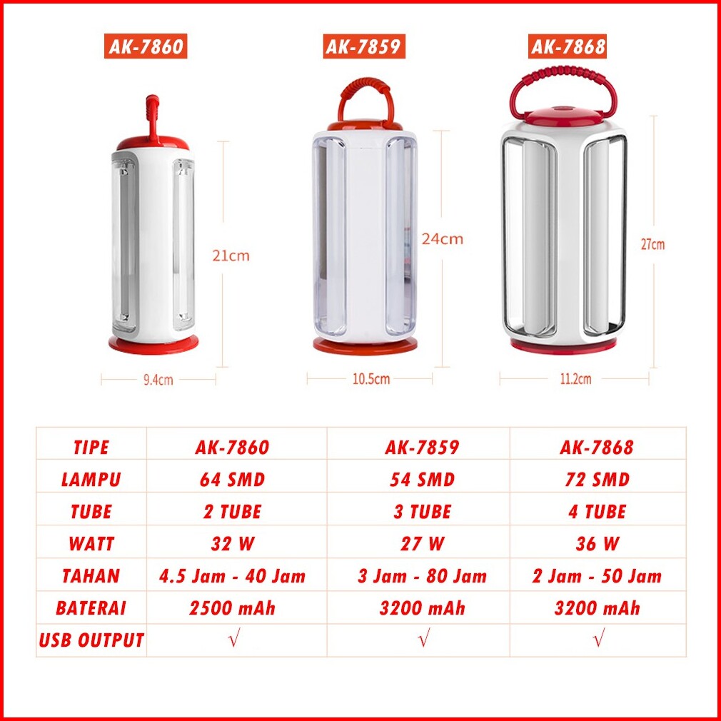 Aoki Lampu Darurat Tube 64smd Tahan Hingga 40jam Dengan Tingakt Pencahayaan Redup