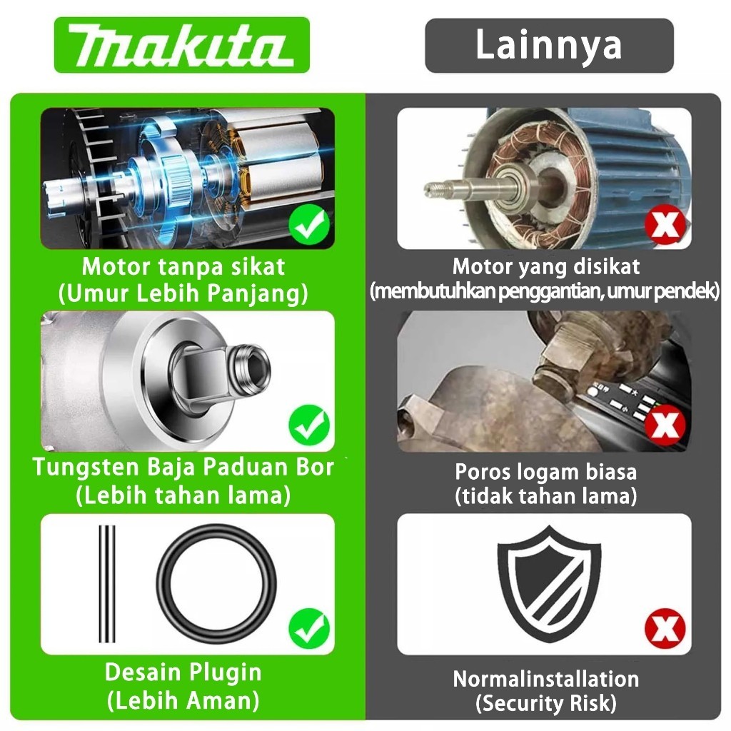 Makita Impact Wrench 599V Cordless Impact 2Baterai Impek Baterai Kunci Wrench Impact Brushless
