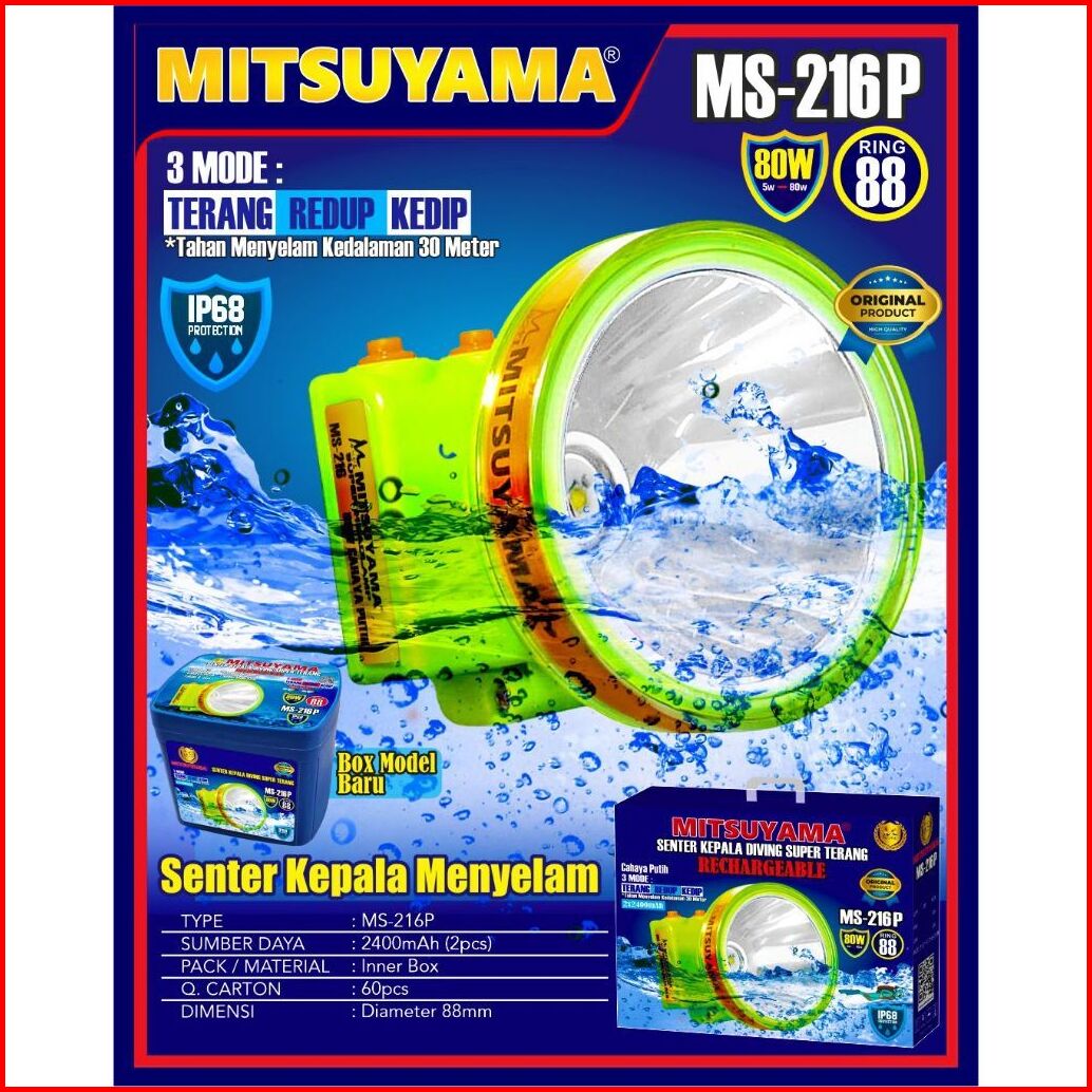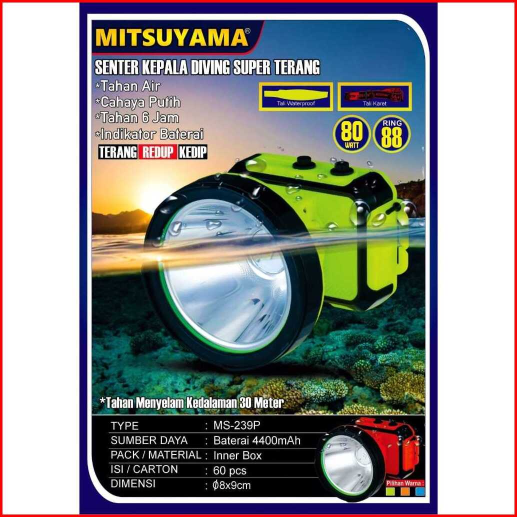 Senter Kepala Selam 80 Watt Mitsuyama Ms-216p - Cahaya Terang Dan Tahan Lama