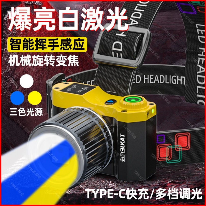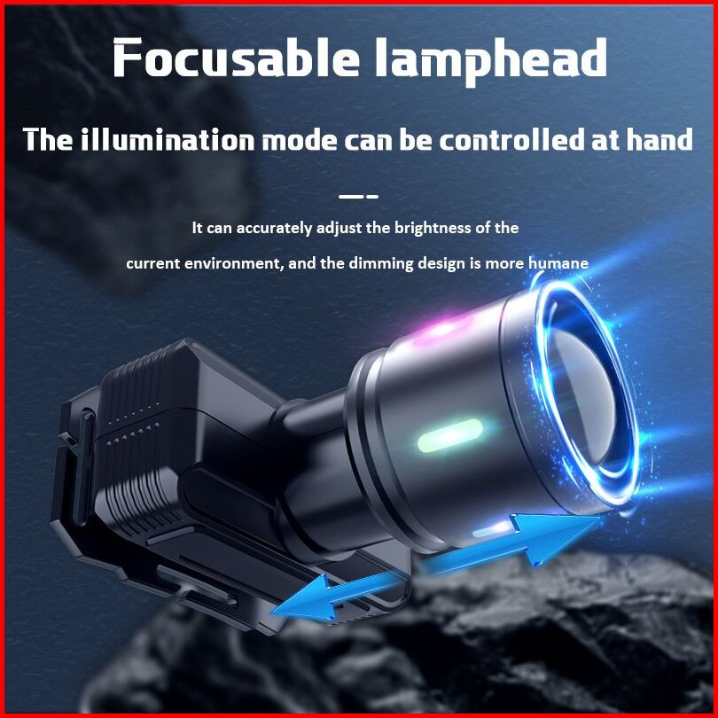 Senter Kepala Led Kx-1832 100w 3warna Cahaya - Mode Zoom - Mode Sensor - Charger Usb Type C - Dengan Indikator Baterai