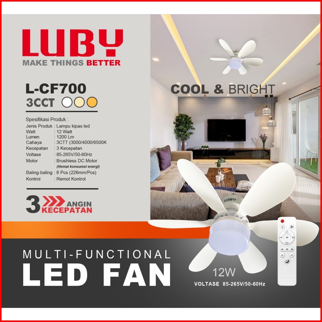 Lampu Kipas 15watt Luby L-cf701 3 Warna Cahaya Dengan Remote Dan Fungsi Kipas