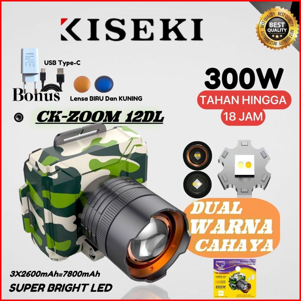 Senter Kepala Led Kiseki Ck-zoom 12dl 300watt - 2 Warna Cahaya Putih Kuning - Baterai 7800mah - Tahan Hingga 18 Jam