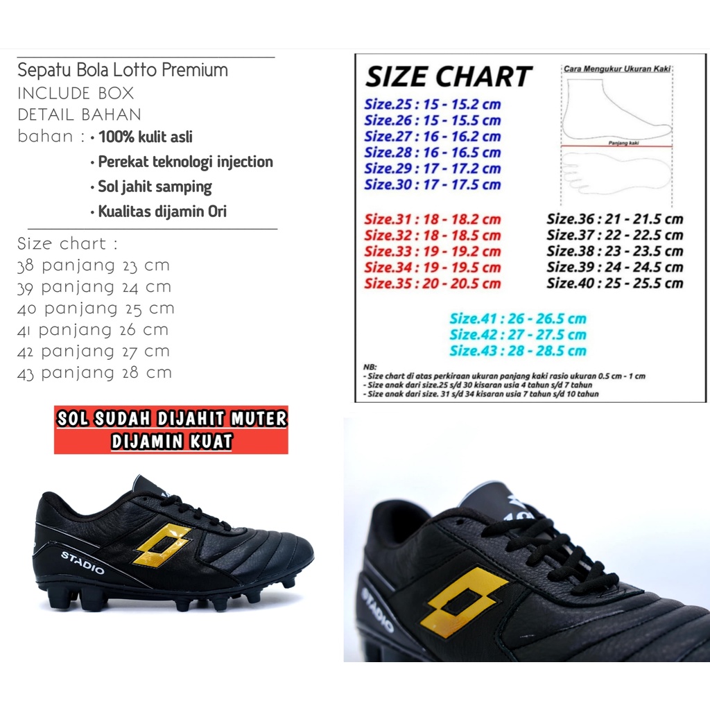 Sepatu Bola Kulit Asli Lotto Sol Sudah Dijahit Muter
