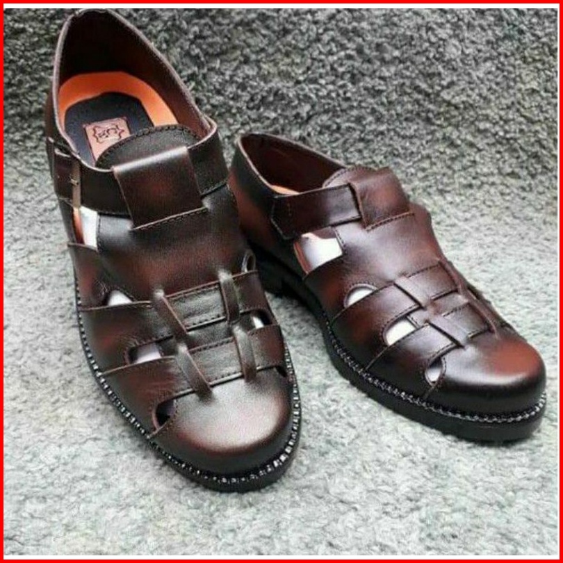 Sandal Sepatu Sepatu Brongsong Pria Kulit Asli Hitam Dan Coklat
