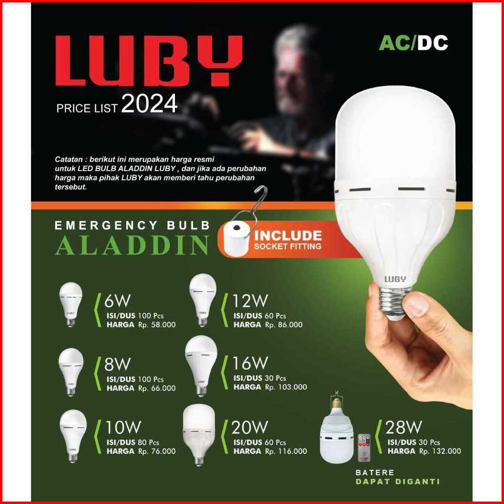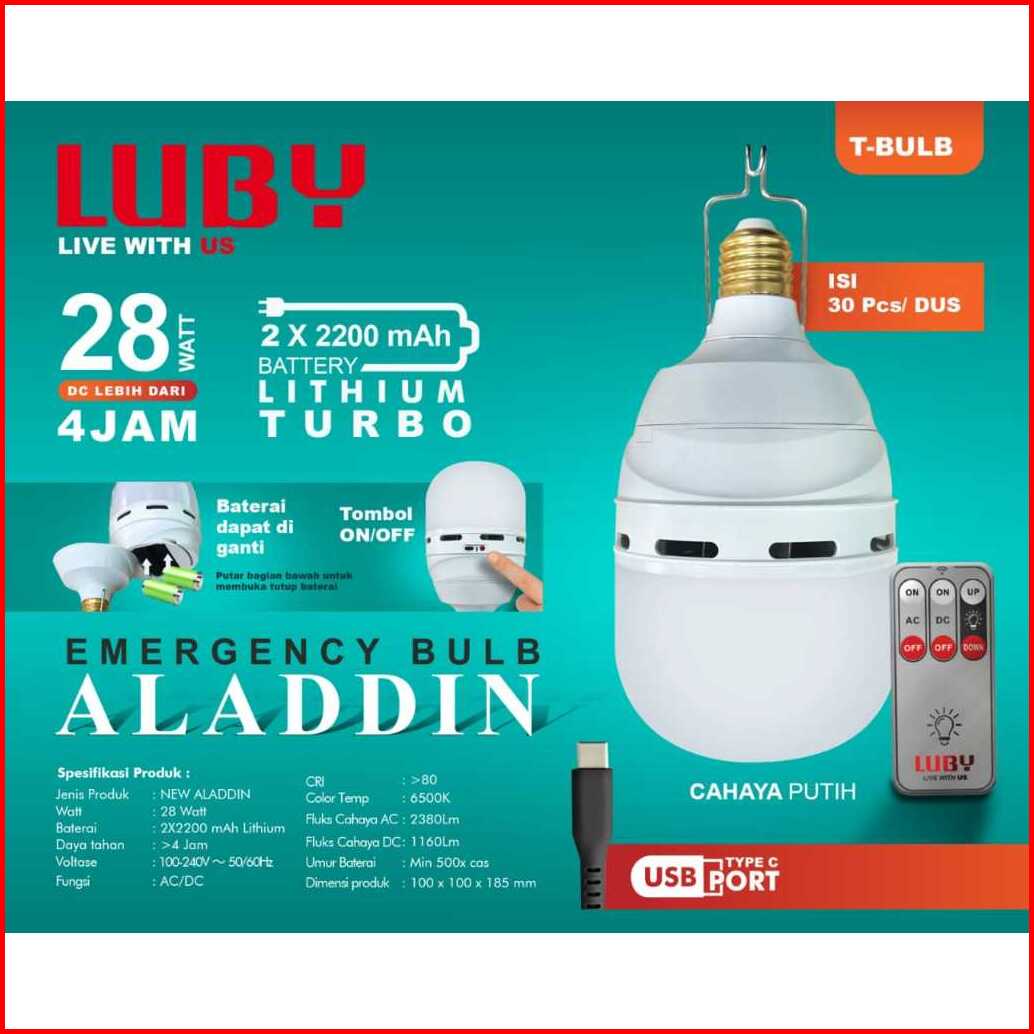 Lampu Bohlam Led Luby Emergency Bulb Aladdin 28watt - Baterai Dapat Di Lepas Pasang -baterai 4400mah - Dengan Remote - C