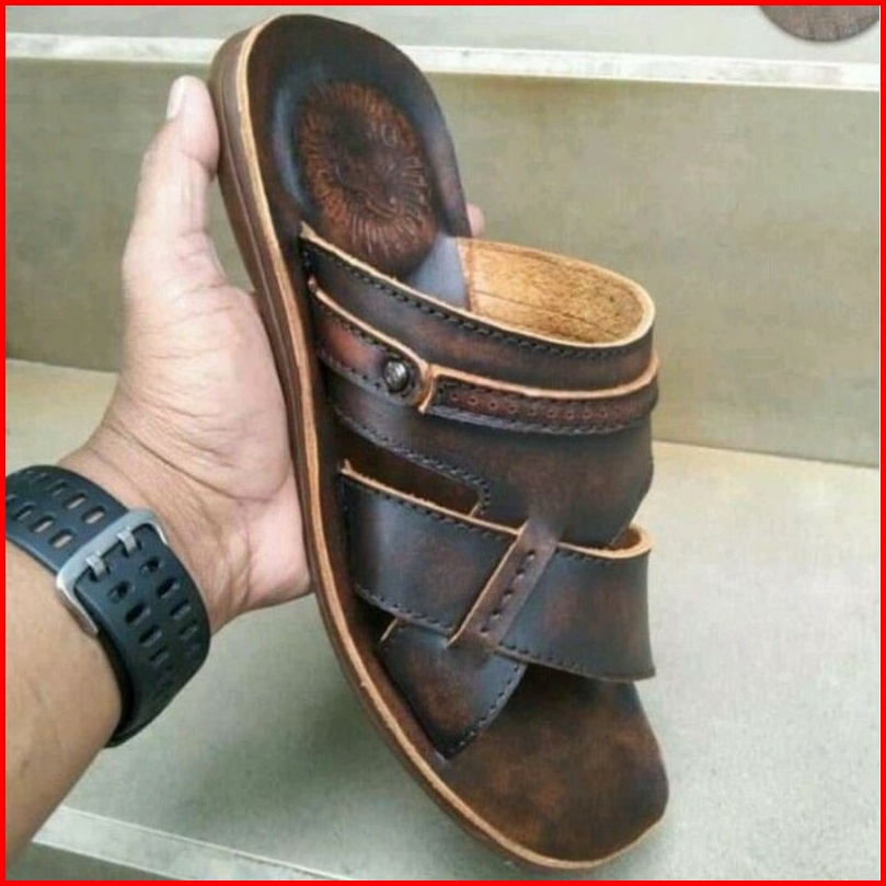 Sandal Pria Kulit Original Handmade Tali Sampai Alas Bawah Ful Kulit Asli