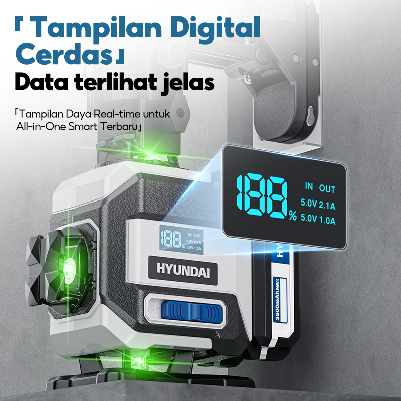 HYUNDAI Mesin Self Leveling Laser Laser Level Presisi Tinggi dengan 12 Garis Hijau with Remote