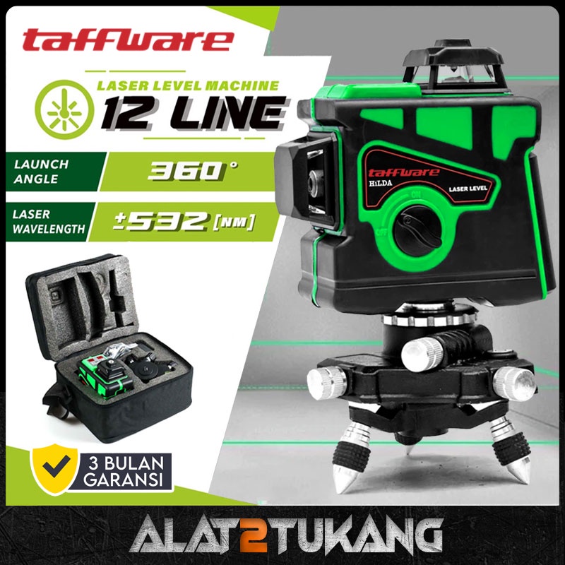 Taffware Hilda Laser Level 12 Line 3D Self Leveling 360° Waterpass Digital Sinar Hijau