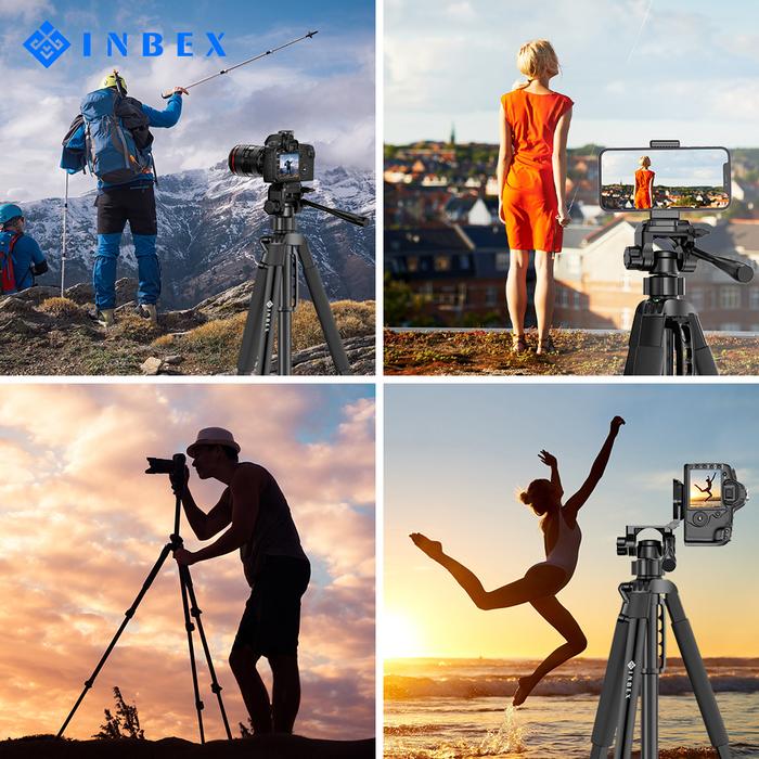 【24H SHIPPING】 INBEX 170CM TRIPOD KAMERA HP BLUETOOTH REMOTE TRIPOT HANDPHONE HOLDER BESI KEKERASAN TINGGI TAHAN LAMA 5KG PEMOTRETAN PANORAMA 360° KEMIRINGAN 180° DAPAT DILEPAS - TRIPOD