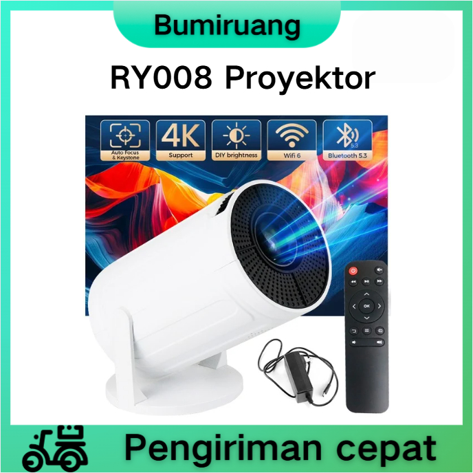 BUMIR RY008 Proyektor Portabel 1280720P HD 100-120 Lumen ANSI, Mendukung WiFi/HDMI/USB, Proyeksi Ukuran 40-100 Inci