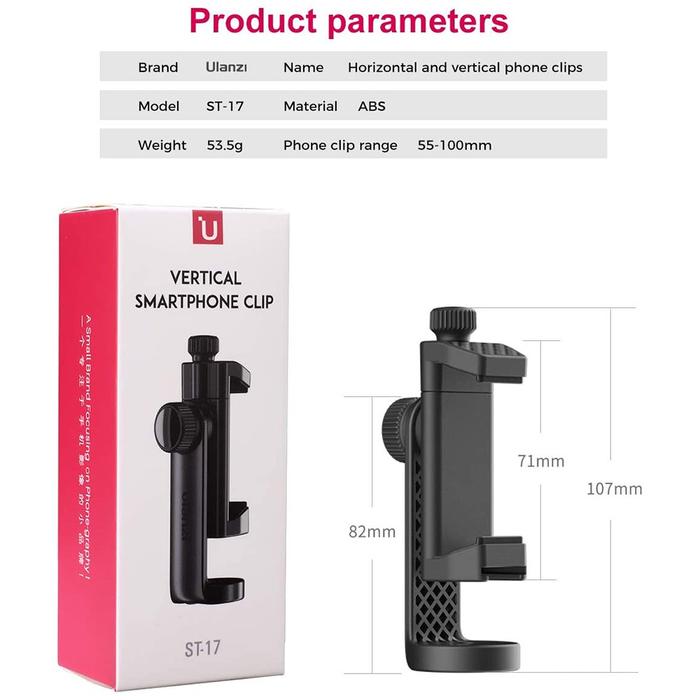 ULANZI ST-17 HOLDER VLOG HP CLIP ALUMINIUM ALLOY 360 TRIPOD MOUNT SMARTPHONE WITH COLD SHOE - 1