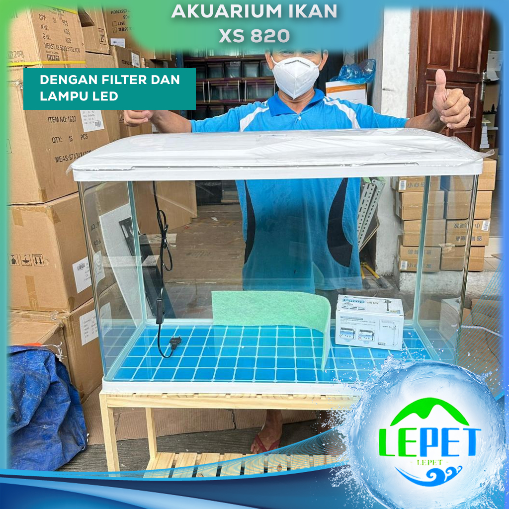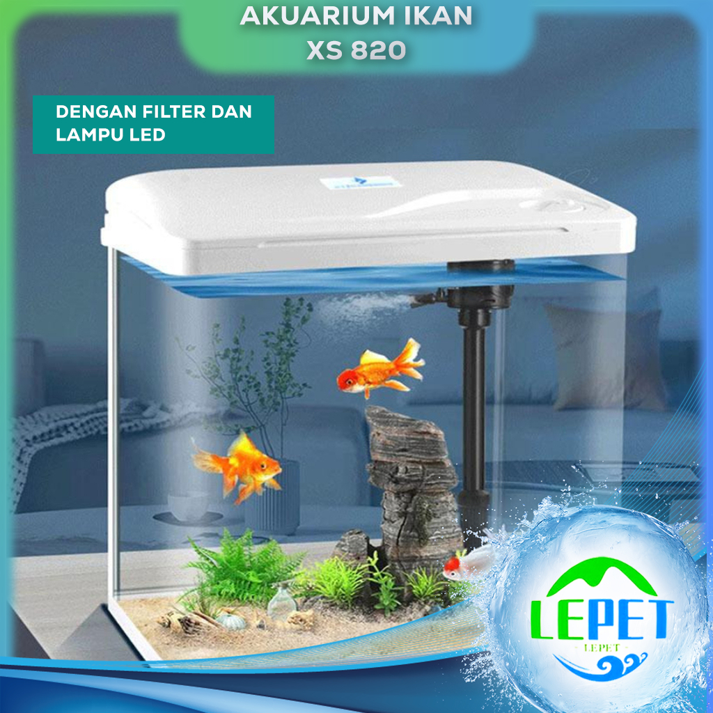 LEPET Akuarium Ikan XS 820 (80x33.5x58.5 cm)Tangki Ikan Mini Dengan Filter Dan Lampu Led