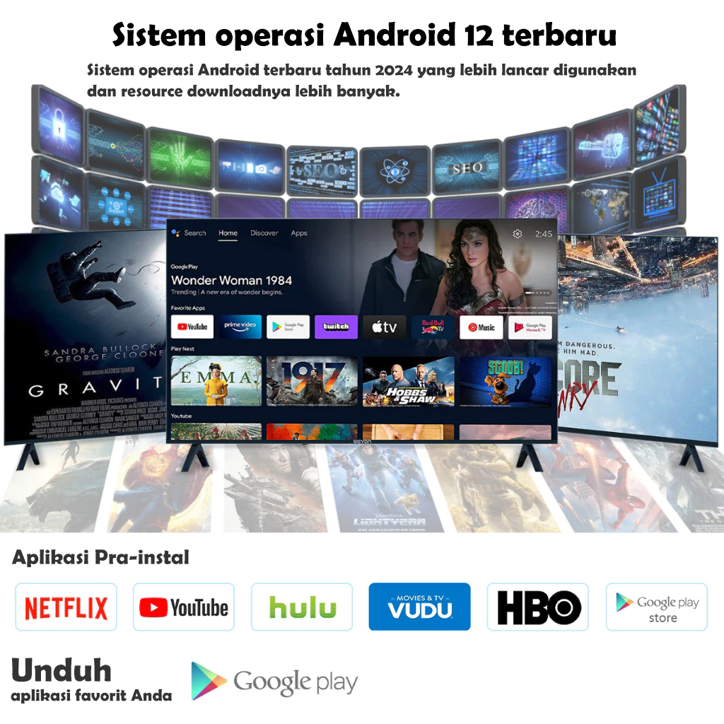 Sivatel TV Smart Android 32 inch TV LED/LCD Digital 32/22/24/25/27inch FHD Android 12.0 Televisi Murah