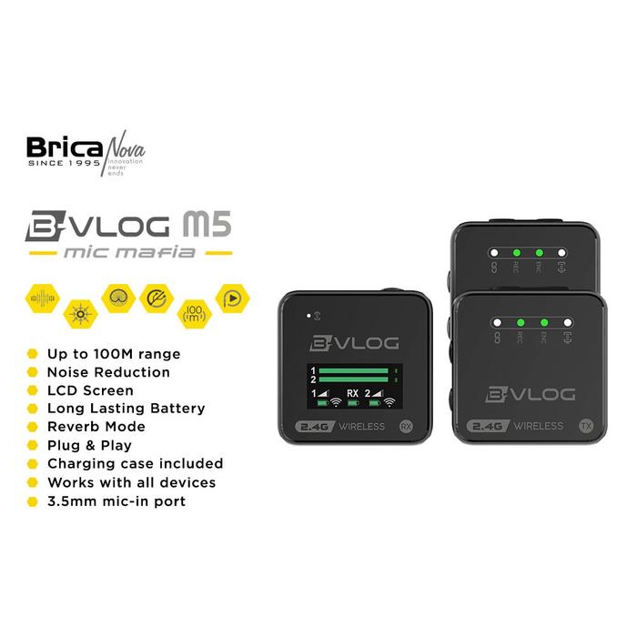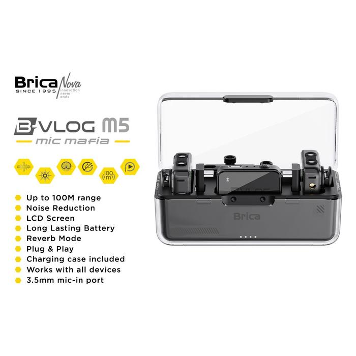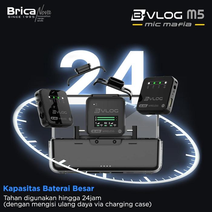 BRICA B-VLOG M5 DUAL MAGNETIC CLIP WIRELESS MICROPHONE - CLIP ON MIC VLOG - WITH CHARGING CASE - BVLOG ORIGINAL RESMI