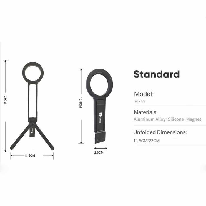 JE SERIES TRIPOD MAGNETIC PHONE HOLDER MAGSAFE CARABINER TRIPOD MAGNETIC PORTABLE RINGAN STAND ALUMINIUM DUDUKAN HP MAGNETIK COCOK UNTUK KONTEN - HITAM