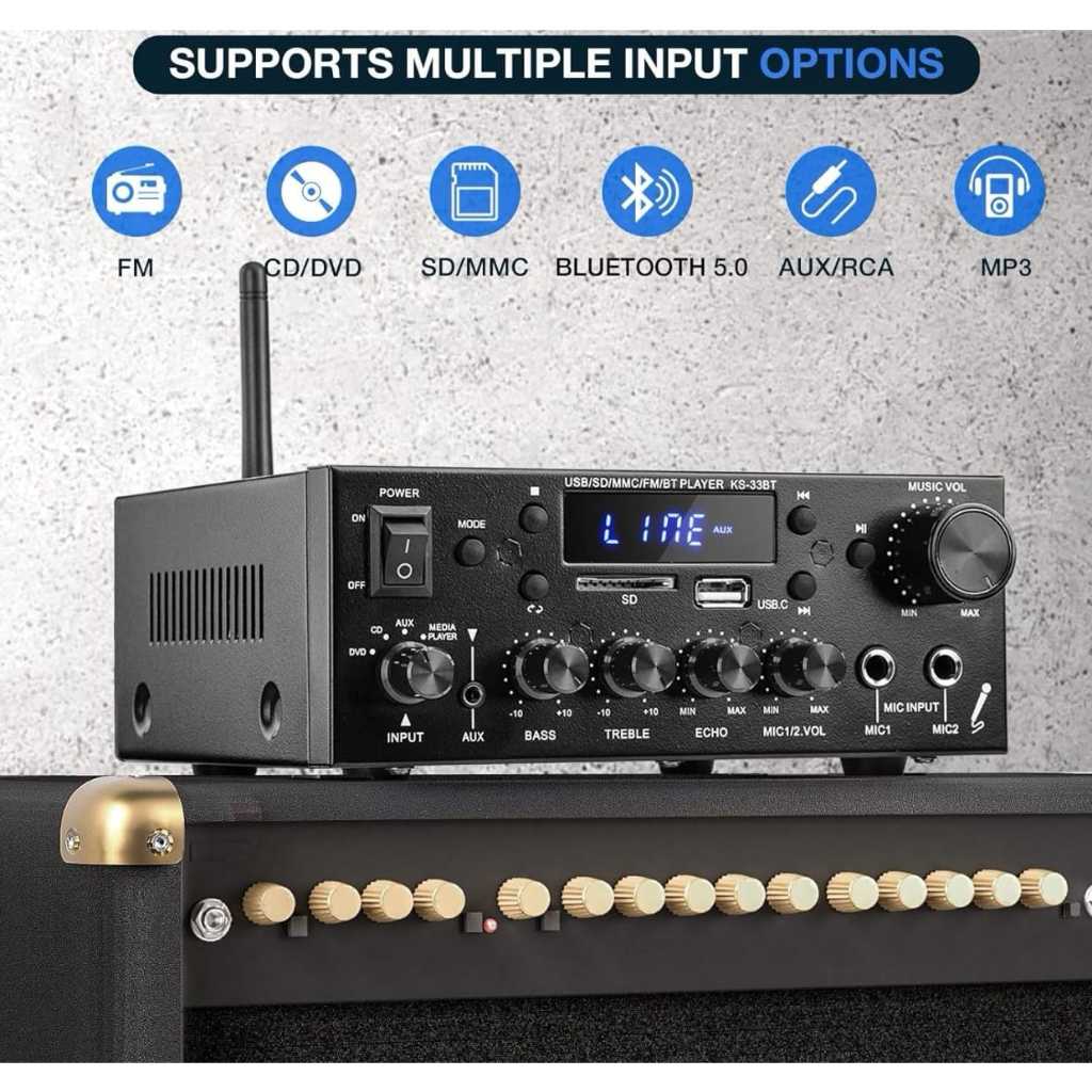 (Model Terbaru 2023)Bluetooth EQ Audio Amplifier Home Theater FM 1000W KERNDY KS-33BT NEW 2023