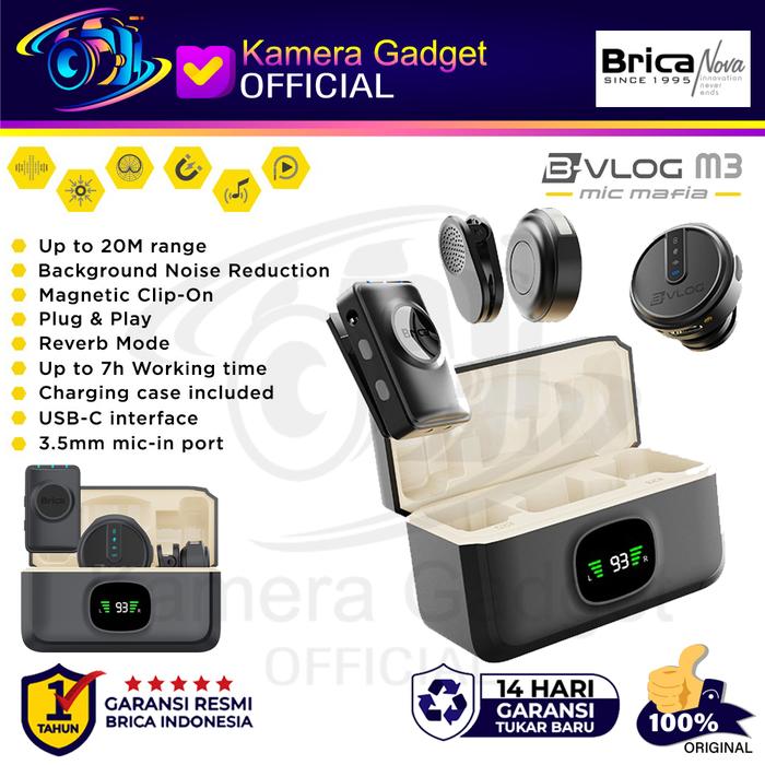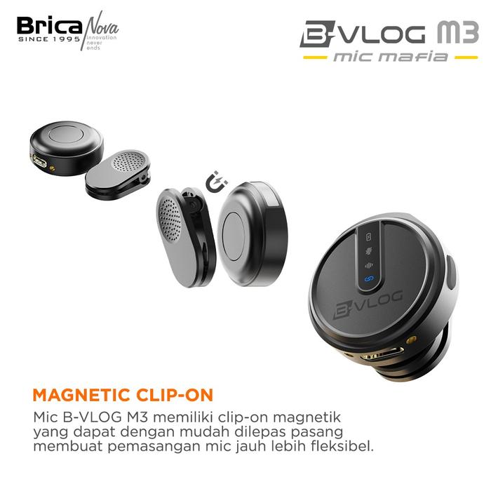 BRICA B-VLOG M3 DUAL MAGNETIC CLIP WIRELESS MICROPHONE - CLIP ON MIC VLOG - WITH CHARGING CASE - BVLOG ORIGINAL RESMI