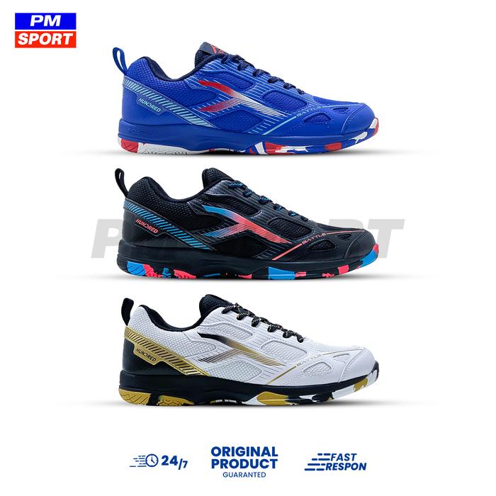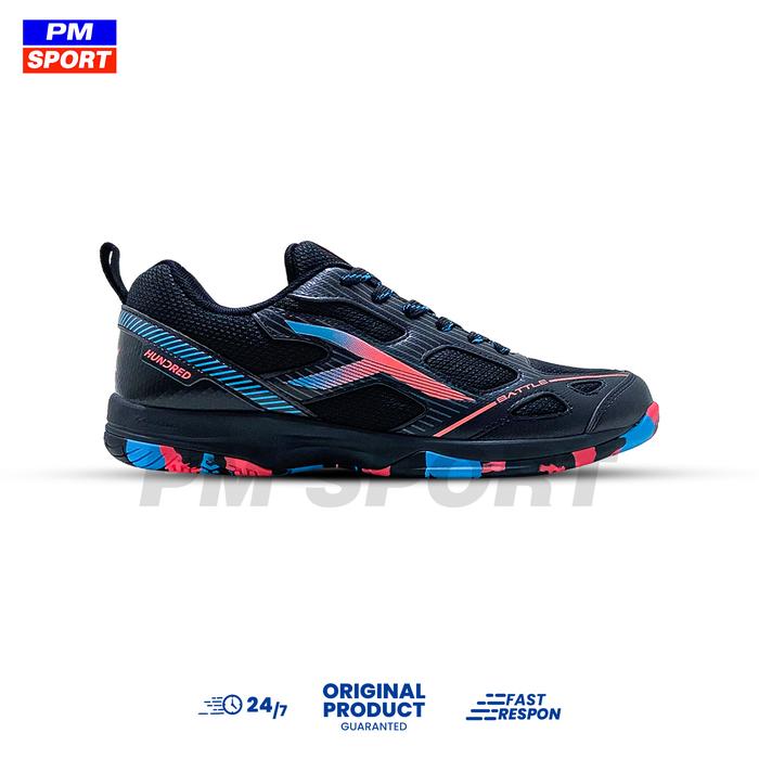 SEPATU BADMINTON HUNDRED BATTLE NEW BLUTANGKIS ORIGINAL - BLACK/ORANGE/BLUE, 43