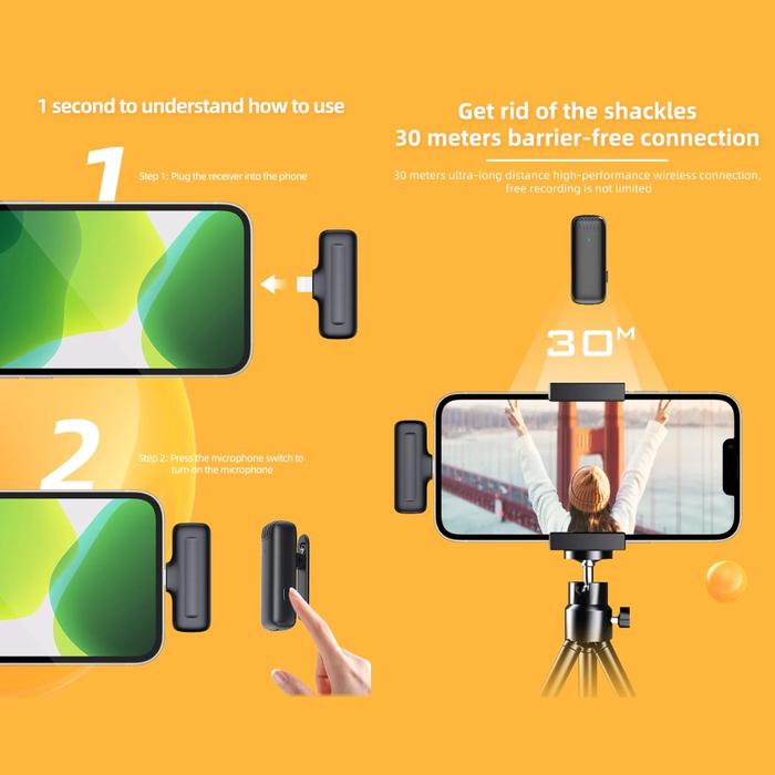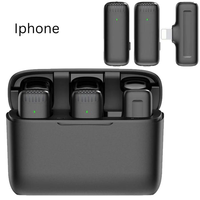MICROPHONE WIRELESS LAVALIER 2 MIC CLIP ON DENGAN KOTAK PENGISIAN DAYA - TYPE C
