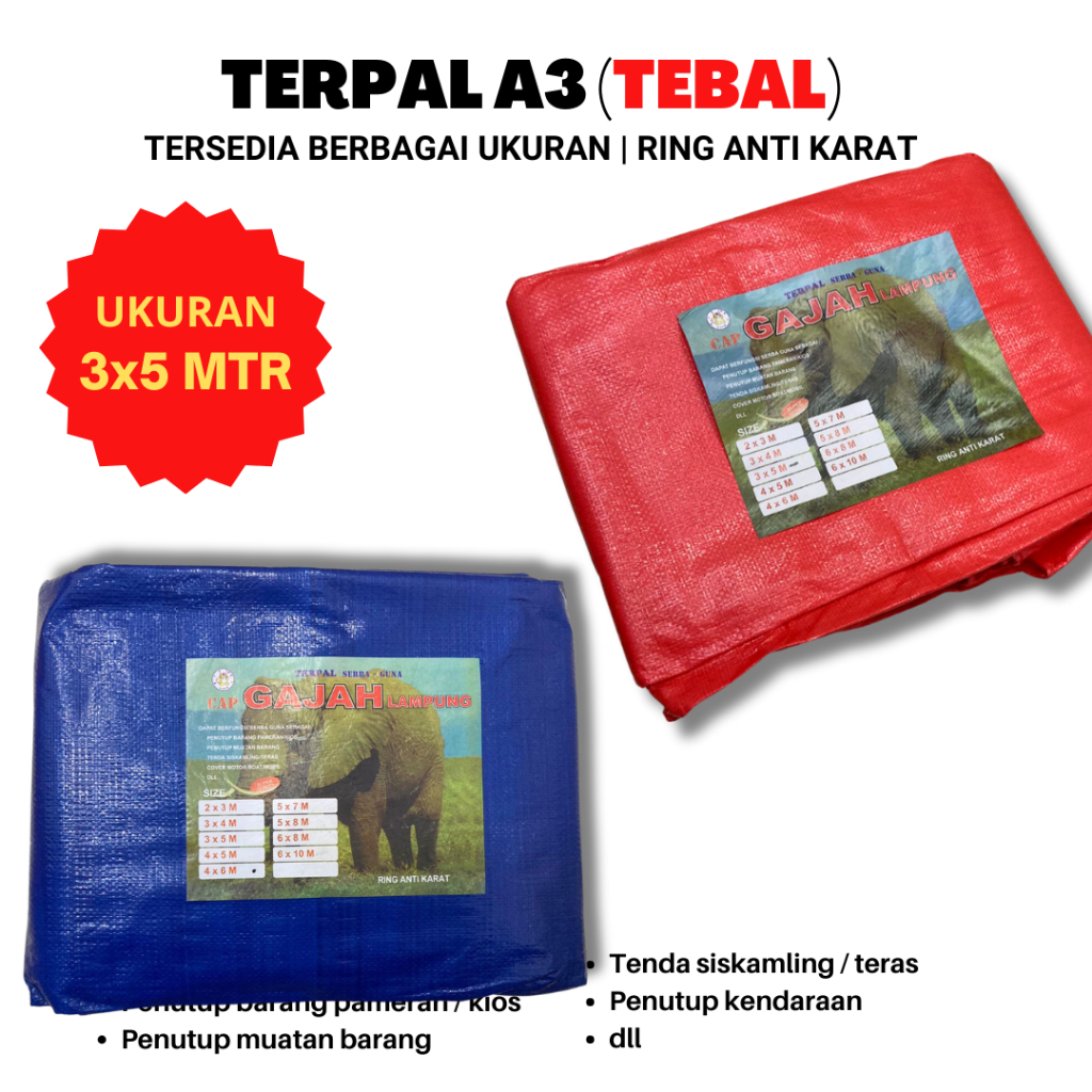 Terpal Plastik Serba Guna UK. 3 x 5 Meter Cap Gajah Lampung