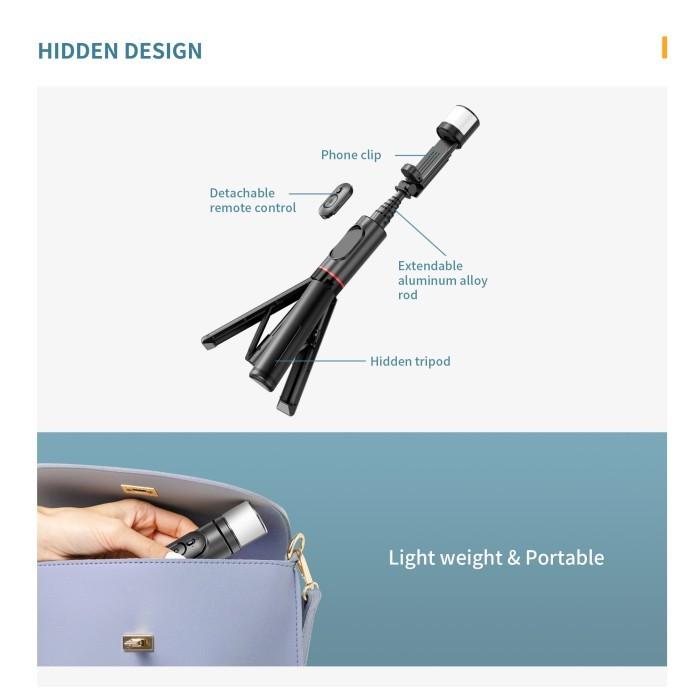 KIIP TRIPOD MINI SELFIE STICK TONGSIS BLUETOOTH FILL LIGHT HANDPHONE - SELFIE01