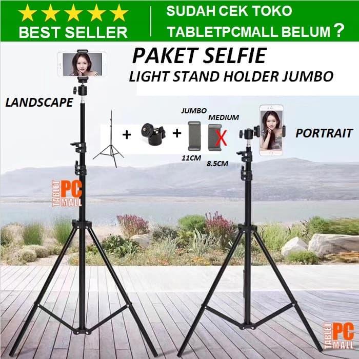 PAKET SELFIE LIGHT STAND HOLDER JUMBO DUAL SCREW PORTRAIT LANDSCAPE