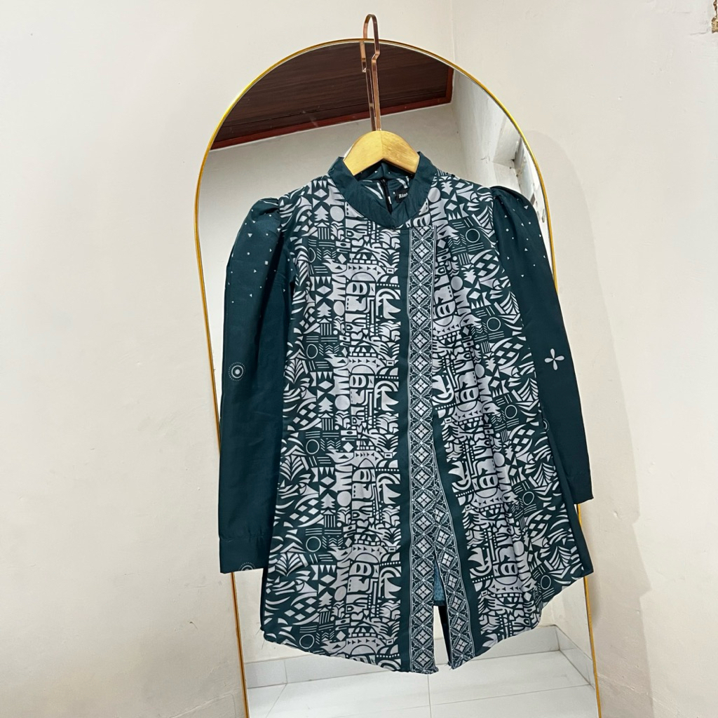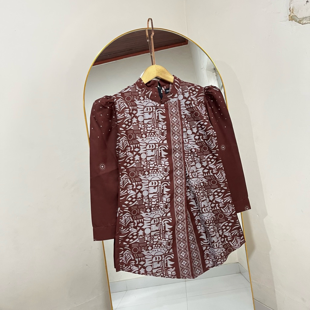 Batik Atasan Wanita Modern Baju Batik Lengan Panjang Puffy Janggan