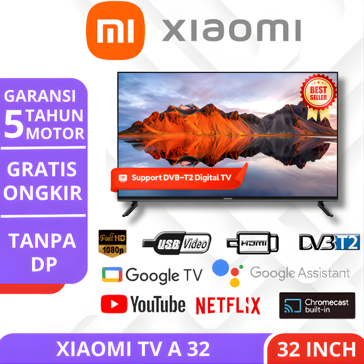 FREE ONGKIR XIAOMI TV SMART 32 INCH QLED GOOGLE TV CINEMAX DIGITAL YOUTUBE GARANSI RESMI ANDROID Mi TV 43 INCH