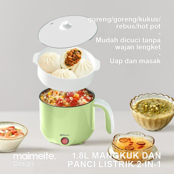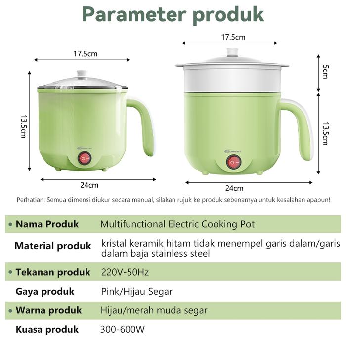 MAIMEITE MINI ELECTRIC COOKER MINI PANCI ELEKTRIK TRAVEL PORTABLE RICE COOKER MINI MAGIC COM 600W - HIJAU, NO STEAMER