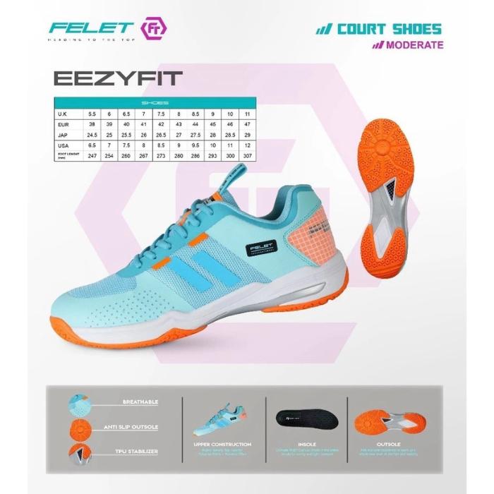 FELET EEZYFIT BADMINTON SHOES - SEPATU BADMINTON ORIGINAL FELET - BLACK, 41