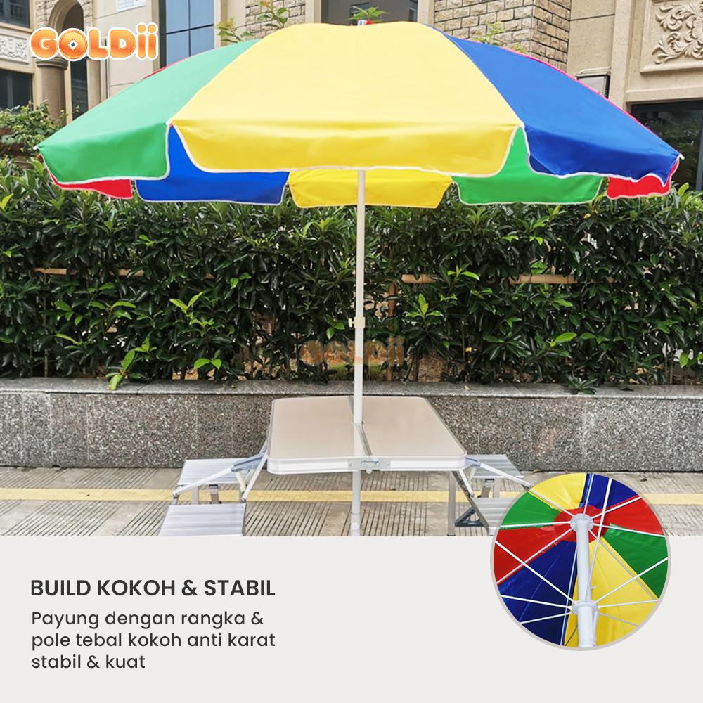 LDII - Payung Tenda 240CM Payung Pantai Jumbo Payung Taman Cafe Bazar Parasol Anti Angin Payung Jualan