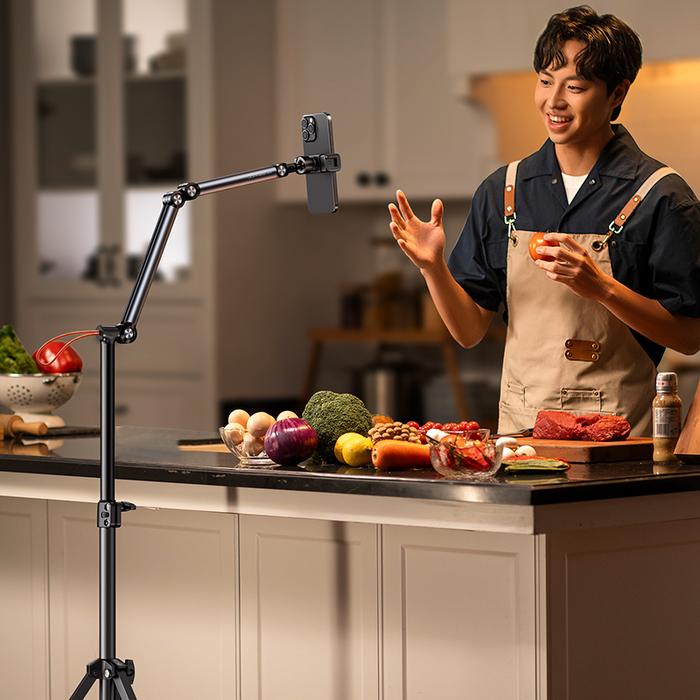 JOPREE B25 TRIPOD STAND PHONE HOLDER ADJUSTABLE ALUMINUM SPIRIT AXIS OVERHEAD FOR LIVE STREAMING PHOTO DAN VIDEO SHOOT - B25