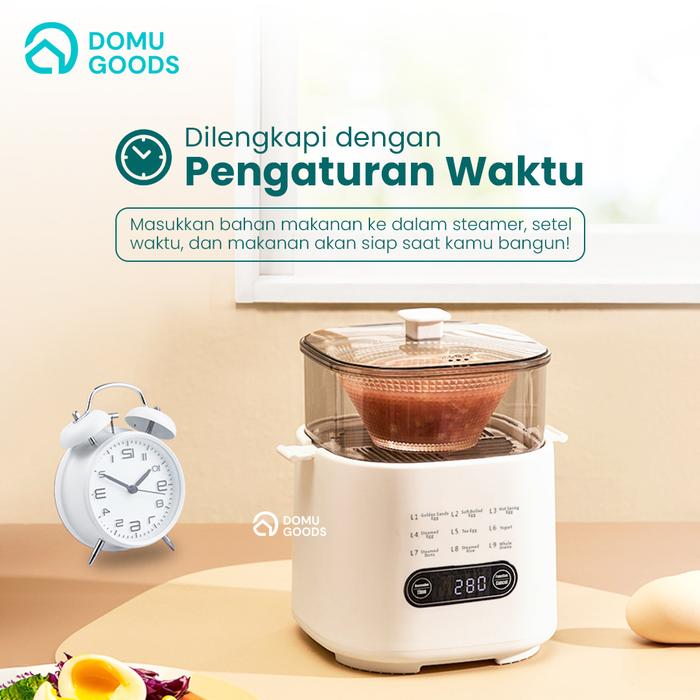 DOMU MINI EGG STEAMER / ELECTRIC STEAMER MULTIFUNGSI / KUKUSAN LISTRIK / ALAT MASAK PRAKTIS / ALAT KUKUSAN SIMPLE / AUTOMATIC STEAMER ELECTRIC - WHITE