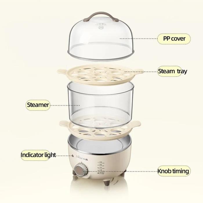 BEAR EGG STEAMER ELEKTRIK 2 SUSUN STAINLESS EGG BOILER STEAMER FOOD - BEAR B14R1