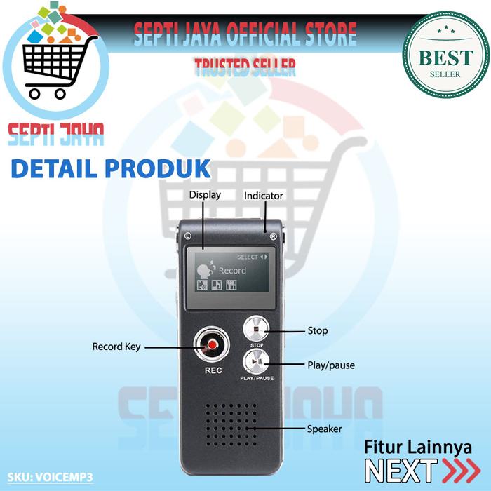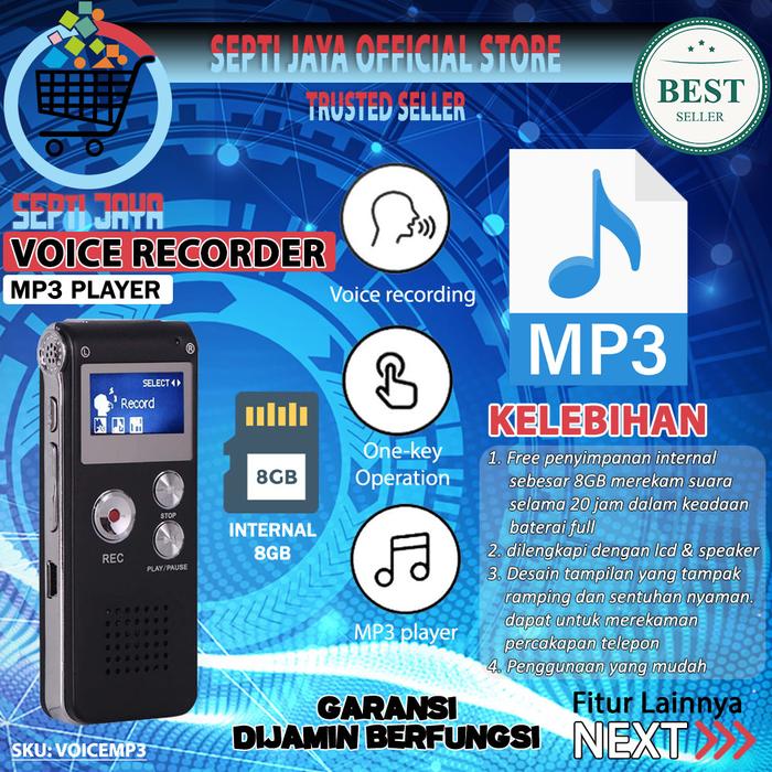 SEPTIJAYA PEREKAM SUARA VOICE RECORDER MP3 MEMORI 8GB PEREKAM SUARA LCD DISPLAY - VOICE USB 8GB
