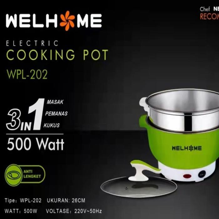 WELHOME WPL-202 PANCI LISTRIK SERBAGUNA WARMER STEAMER COOKER ELECTRIC PENGGORENGAN FRYPAN KUKUS ANTI LENGKET STAINLESS