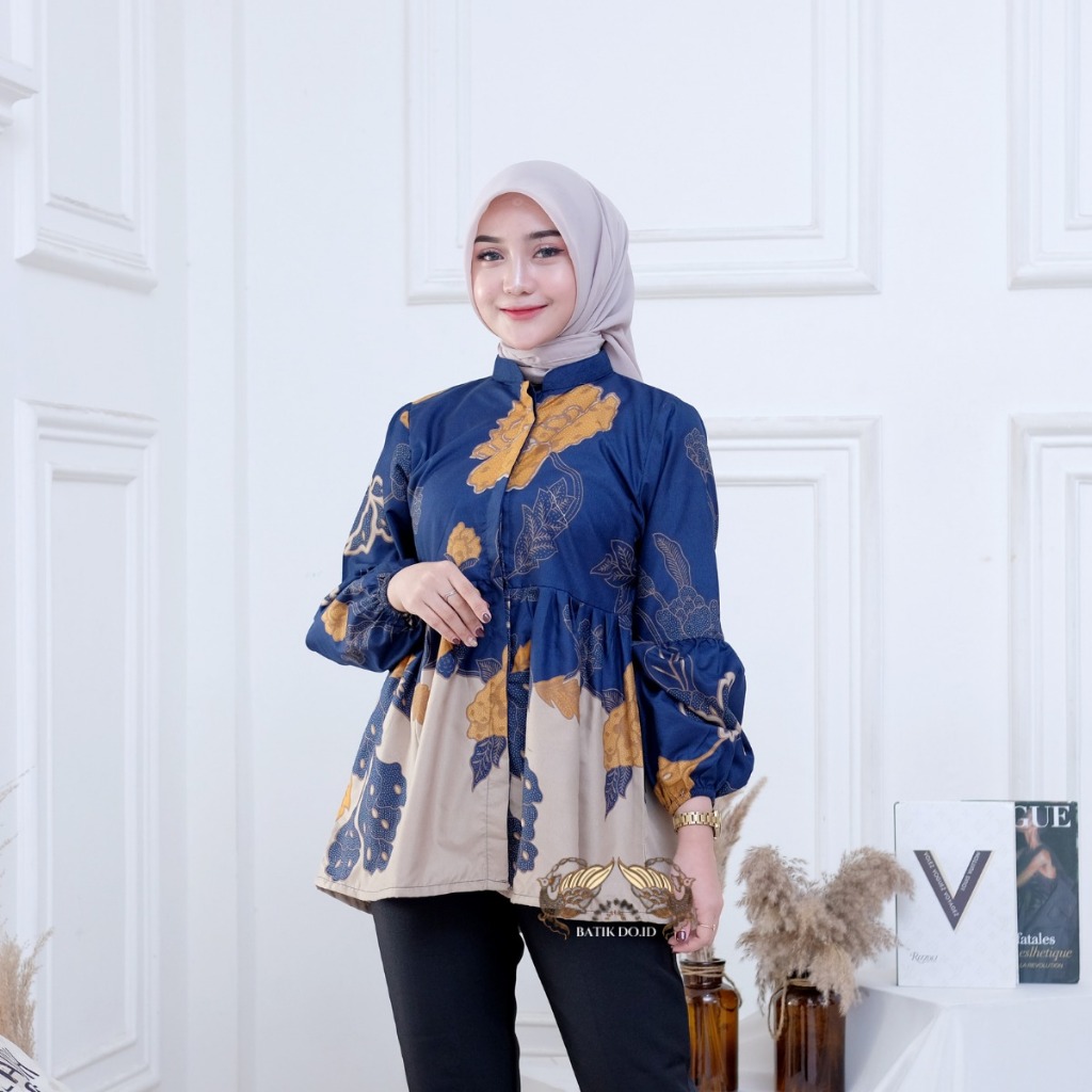Batikdo.id Atasan Baju Batik Wanita Jumbo Modern Blouse Kerja Lengan Balon M L XL XXL