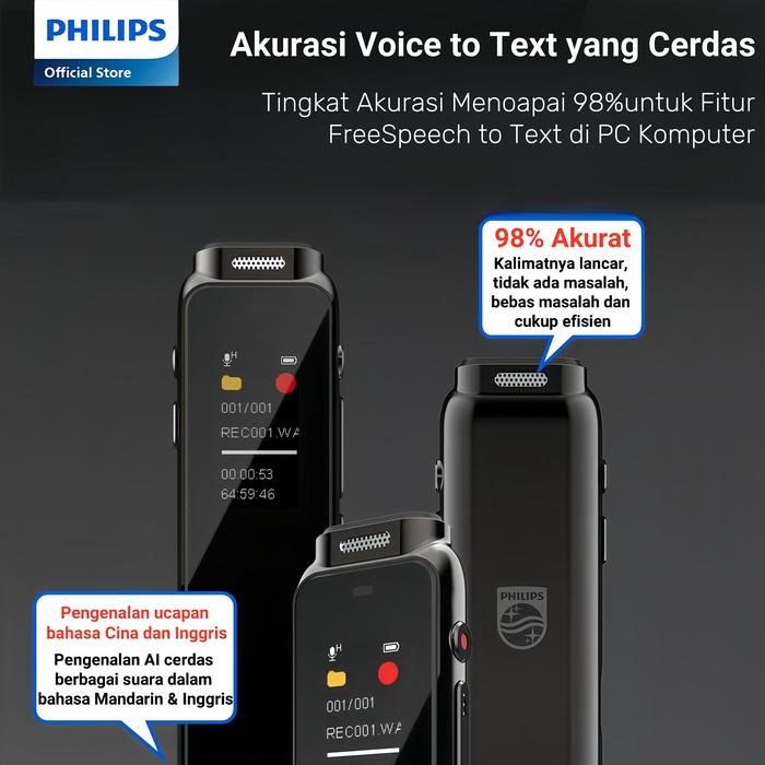 PHILIPS VTR5010 DIGITAL VOICE RECORDER PEREKAMAN PENA PEREKAM KECIL 16GB KAPASITAS TINGGI - HITAM - 16G
