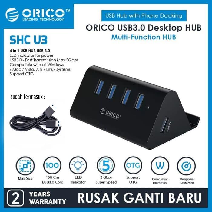 ORICO USB HUB SHC U3 4 PORT USB 3.0 DENGAN DOCKING UNTUK TELEPON DAN TABLET GARANSI RESMI 2 TAHUN KABEL GRATIS - HITAM, STANDAR