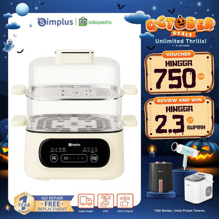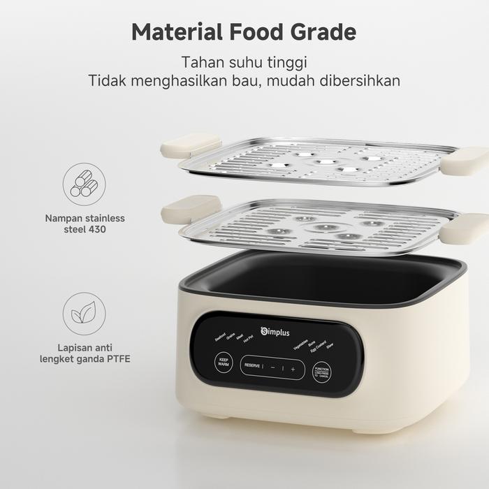 SIMPLUS KUKUSAN LISTRIK 2 TINGKAT KUKUSAN KAPASITAS 11L HEMAT LISTRIK LOW WATT 800W PANCI MEREBUS & HOTPOT DELAY TIMER 24 JAM 8 MENU PRASETEL NAMPAN STAINLESS STEEL DZEG004