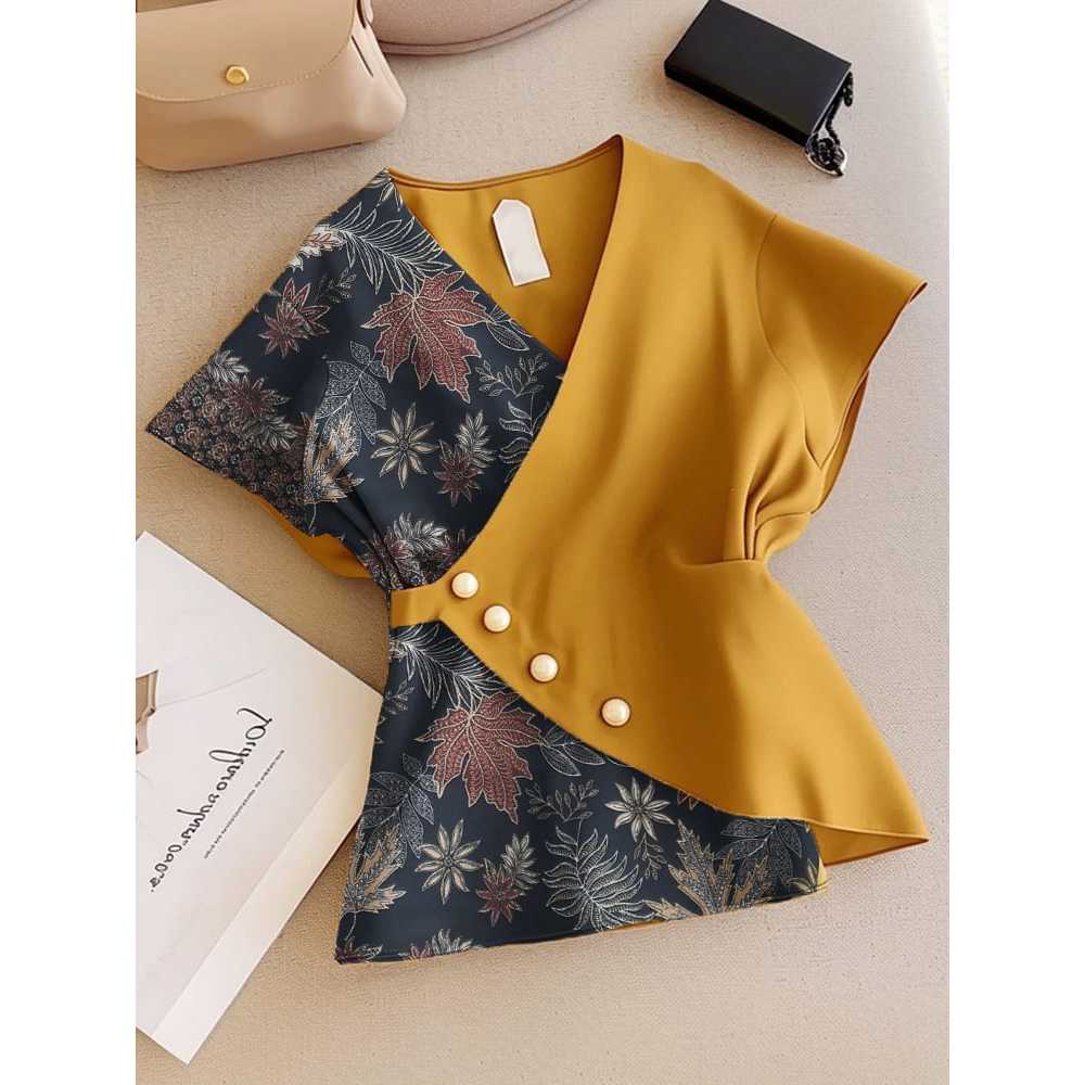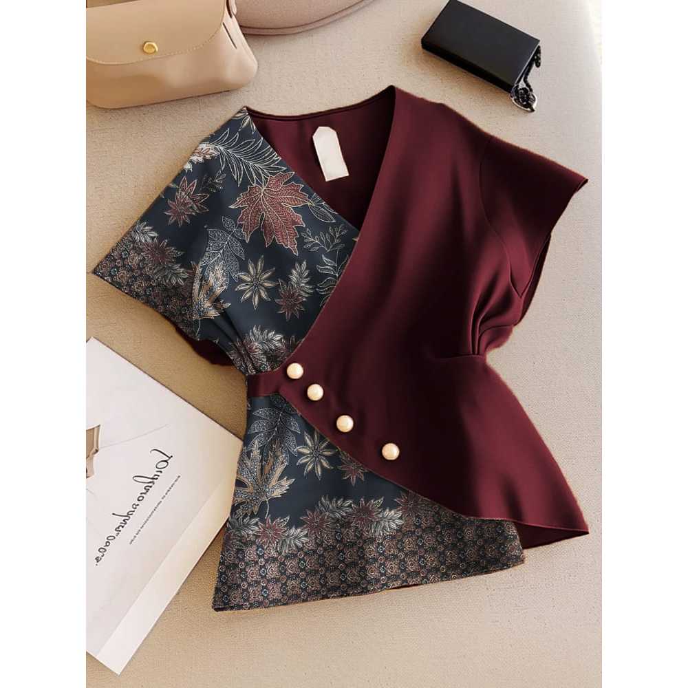 THABI GAIBA T0P BLOUSE WANITA KONDANGAN MOTIF BATIK BAJU WANITA ATASAN KOREAN OUTFIT SIMPEL LENGAN PENDEK BATIK