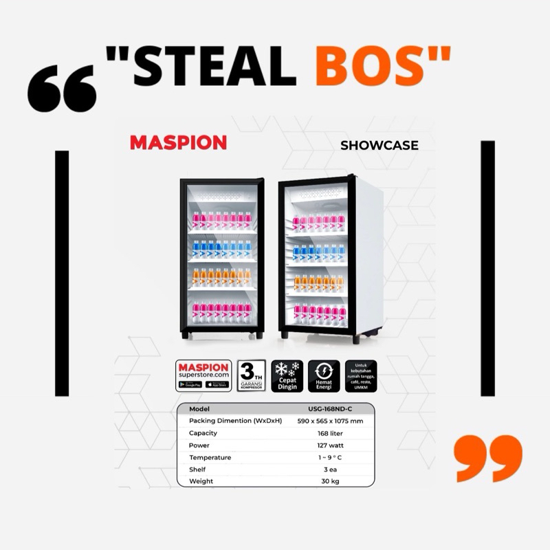 sokes pendingin minuman MASPION showcase USG 168 liter SHOWCASE maspion USG 168 liter