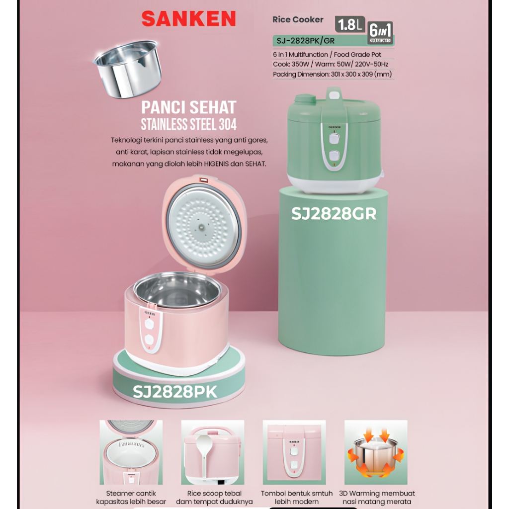 Sanken Rice Cooker SJ-2828PK Magic Com 1.8 L Pink - rIce cooker mini murah berkualitas